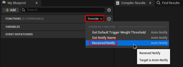 Now we have a custom Anim Notify, but it’s not doing anything. To add logic to it, we need to override the “Received Notify” function
