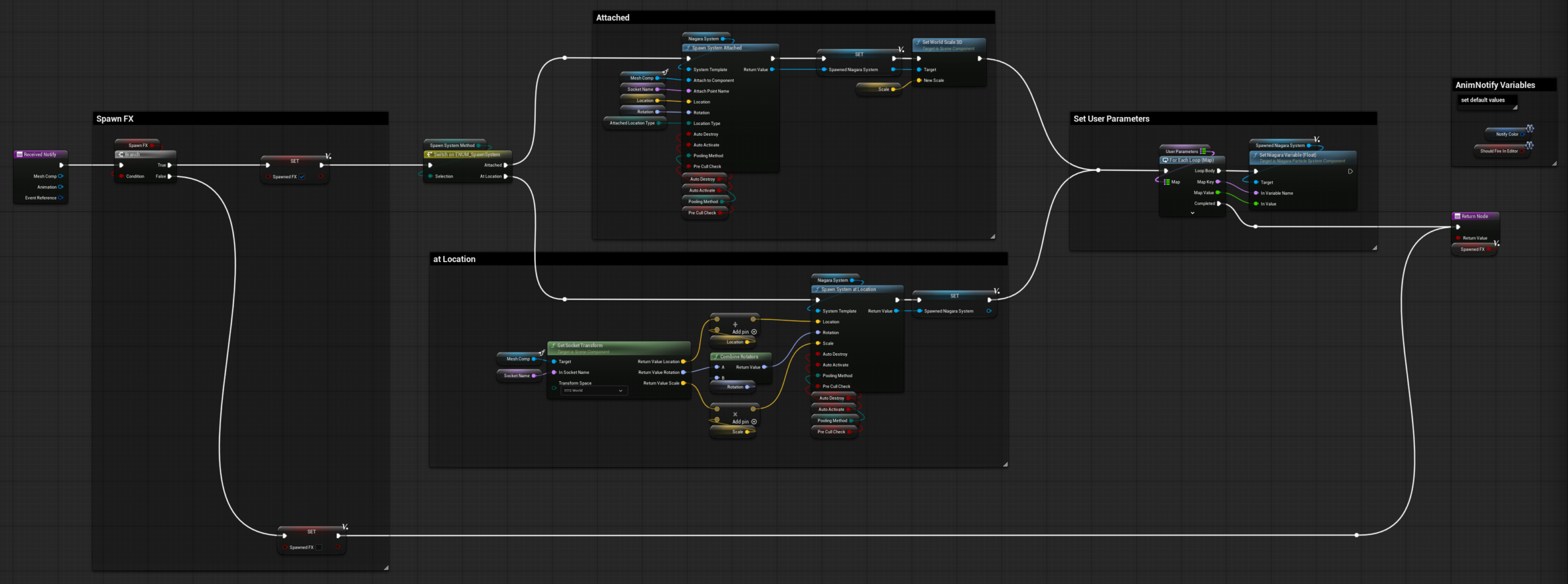 I’m also setting the local variable Spawned FX, which is used for the return node (as explained earlier, I’m not really sure how useful that actually is)
